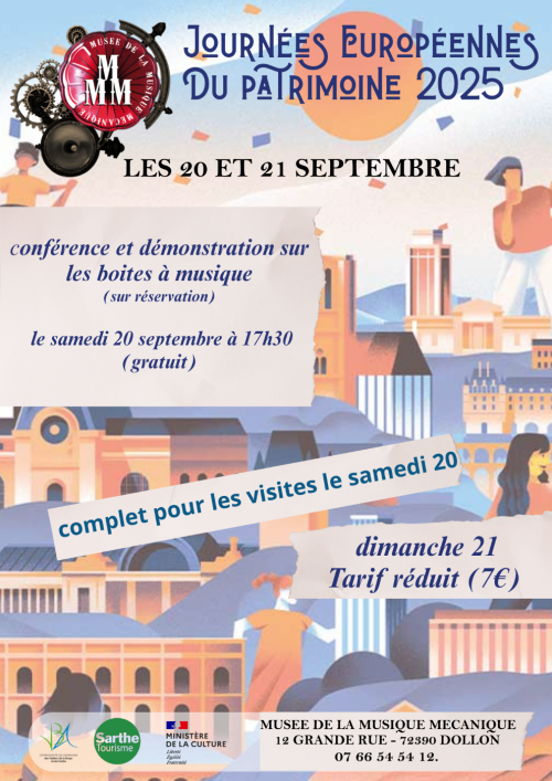 Dans le cadre des Journées du Patrimoine, nous vous proposons une Conférence au Musée sur les boîtes à musique avec démonstrations à 17h30.