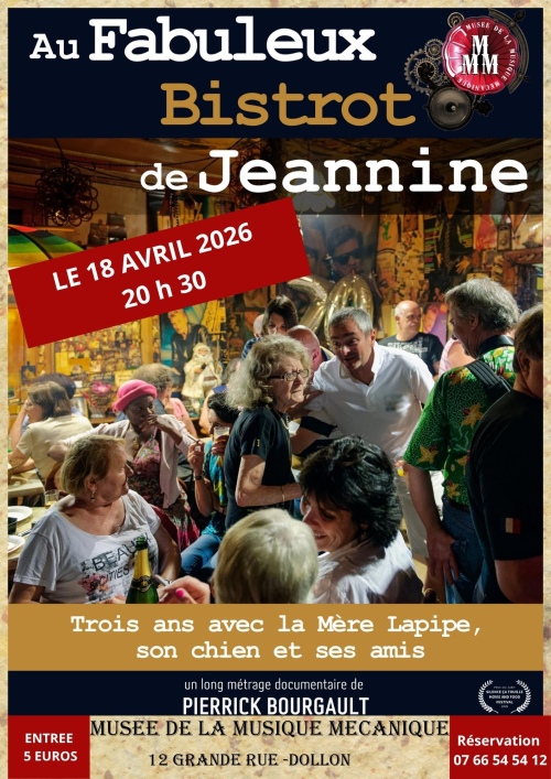 de 20:00 à 22:00 Trois ans avec la mère Lapipe, son chien et ses amisAprès avoir consacré une BD Au café du coin consacrée à Jeannine Brunet, dite la Mère Lapipe, Pierrick Bourgault nous propose un documentaire sur cette figure du Mans et son bistrot "Au Café du Coin". Entrée: 5€ | 19 |